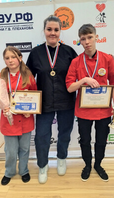 К каждой команде юных кулинаров был приставлен наставник из числа именитых шеф-поваров, студентов и выпускников РЭУ-Пермь. Среди 15 команд наши воспитанники, Арсений и Анастасия под чутким руководством наставника приготовили основное блюдо - суп и компот.